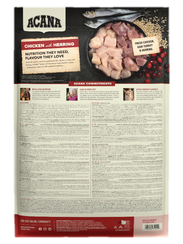 Το κρέας είναι πάντα το νούμερο 1 συστατικό των τροφών μας. Η ACANA Indoor Entrée ξεχειλίζει από ελευθέρας βοσκής κοτόπουλο και γαλοπούλα, αλλά και γευστικό κουνέλι. Όλα σε WholePrey αναλογίες κρέατος, οργάνων, χόνδρου και οστού για να θρέψει πλήρως και με φυσικό τρόπο την γάτα σας. Η ACANA Indoor Entrée προσφέρει στον χνουδωτό φίλο σας τα θρεπτικά στοιχεία που έχει ανάγκη και γεύση που θα λατρέψει.